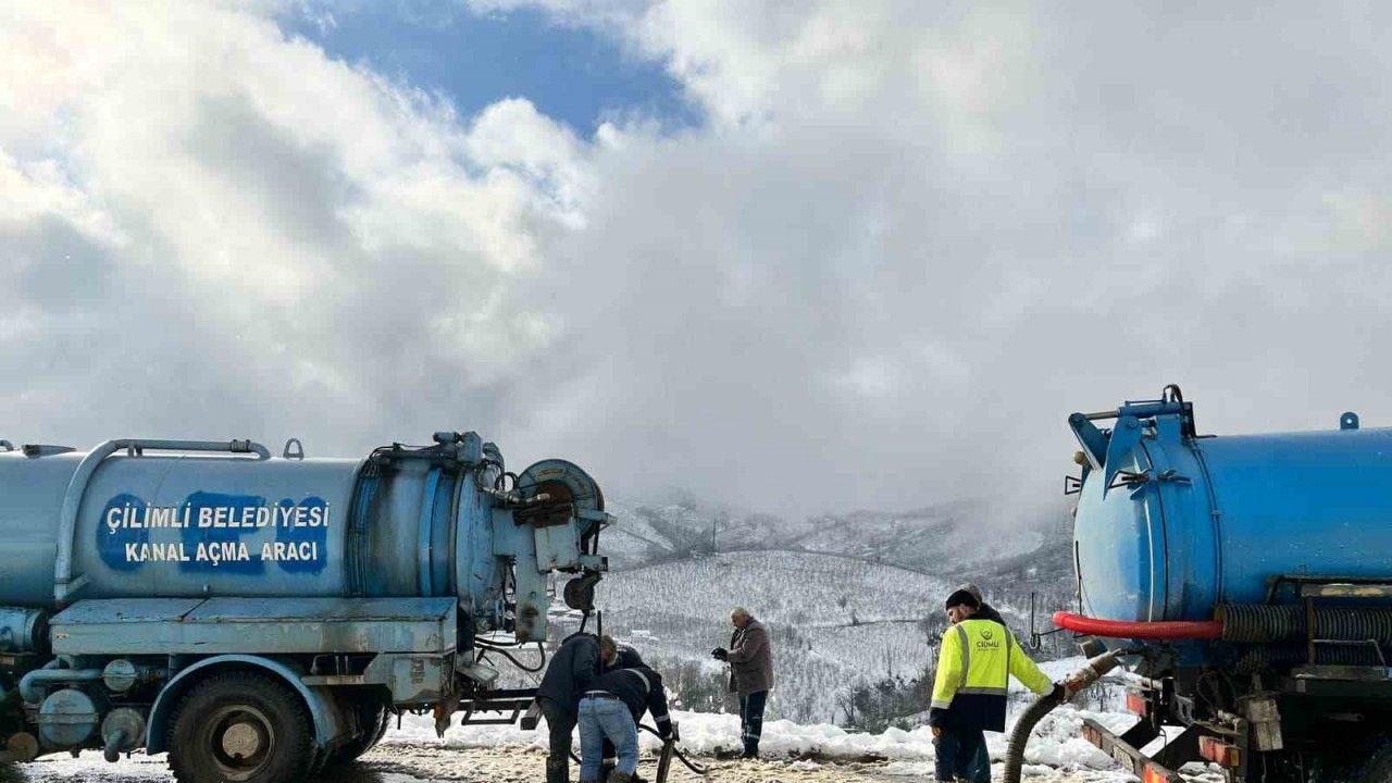 Yurdun büyük bir bölümünde etkili olan kar yağışı sonrasında belediyeler teyakkuza geçtiler. Çilimli Belediyesi kar yağışı sebebiyle oluşabilecek logar tıkanıklıkları ve su taşkınlarını önlemek için sahada çalışmalarını aralıksız sürdürüyor.