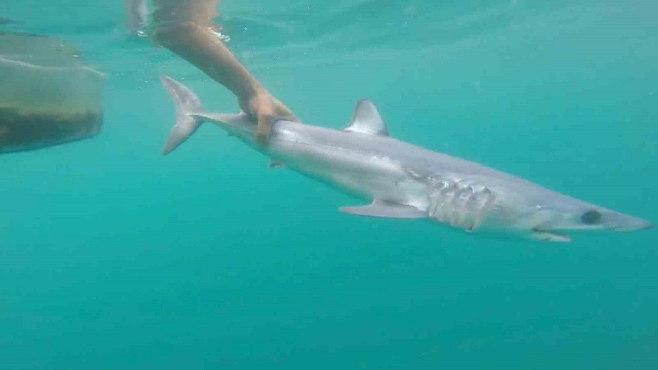 Mersin’de hobi olarak balık avlayan Çınar Küçük, geçen ay oltasına takılan yaklaşık 120 santimetre boyundaki Mako cinsi köpek balığını, yüzgecine takılan olta iğnesini çıkarıp bir süre eliyle tutarak yüzdürdükten sonra denize geri bırakmıştı.