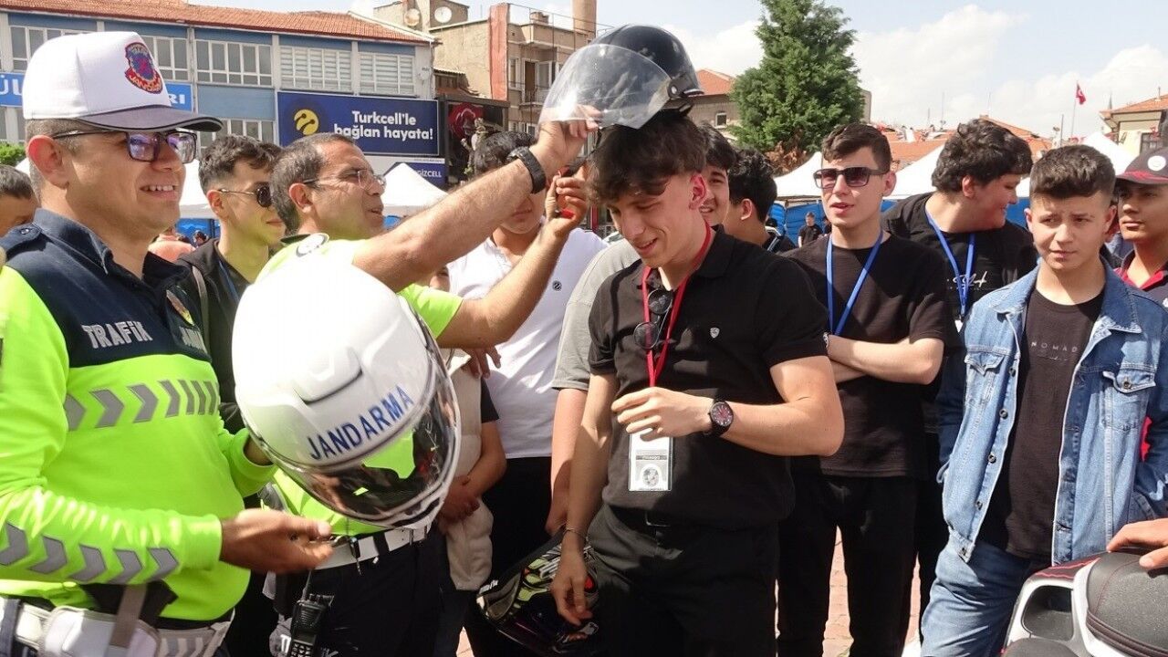 Trafik Haftası etkinliklerinin devamında ise gençlere yönelik bir program düzenlendi. Aynı meydanda gerçekleştirilen bu etkinlikte özellikle motosiklet kullanıcılarını hedefleyen bir bilgilendirme yapıldı. İlçe Emniyet Müdürlüğü Trafik Büro Amiri Ergün Çolak, gençlere kask kullanımının önemini uygulamalı olarak gösterdi. Çeşitli kask tipleri tanıtılırken, kaza anında kaskın hayat kurtarıcı etkisi de detaylı şekilde anlatıldı. İlçe Emniyet Müdürlüğü Trafik Büro Amiri Ergün Çolak, "Kask, motosiklet kullanıcıları için adeta bir kalkan görevi görüyor. Kaza anında yaşanabilecek beyin travmalarını önemli ölçüde azaltıyor. Bu nedenle kısa mesafede bile olsa mutlaka kask takılmalı."