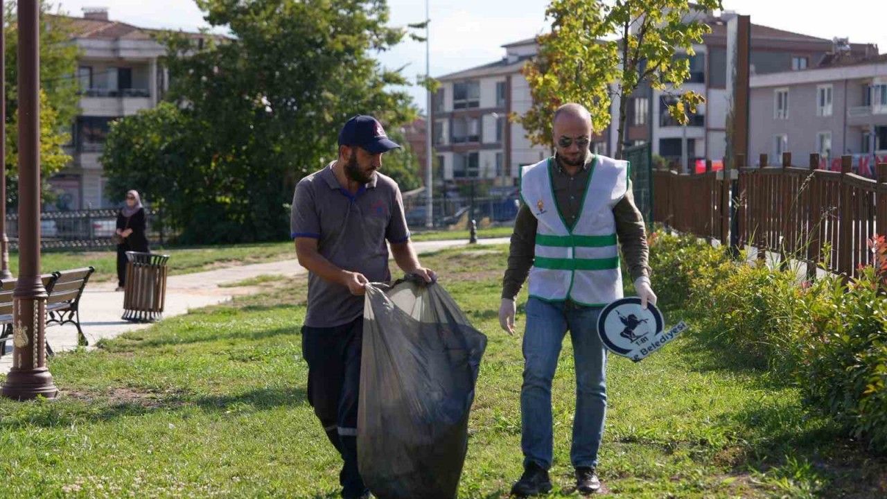 Çalışma ile park temizlenirken, çöp atmayın çağrısında bulunuldu.