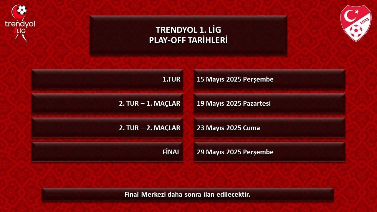 Türkiye Futbol Federasyonu’nun (TFF) resmi internet sitesinden açıklanan 2024-2025 sezonu play-off müsabaka tarihleri şöyle: