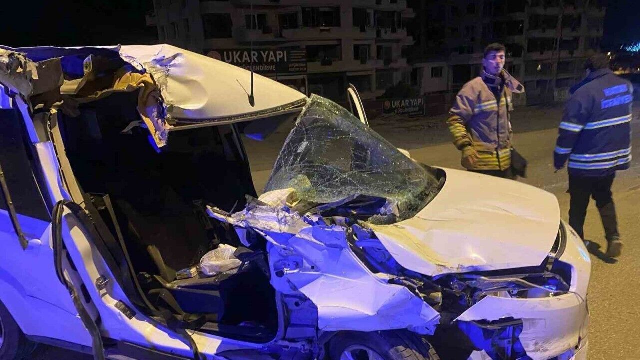 Hatay’da tırla çarpışarak hurdaya dönen hafif ticari araçtaki 2 kişi yaralandı.