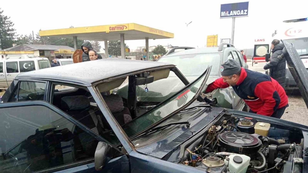 Edinilen bilgiye göre, Karabük-Kastamonu karayolunda Araç’ın Yurttepe köyü mevkiinde benzin istasyonu önünde meydana gelen kazada Satılmış Ö. (55) idaresindeki 78 SB 469 plakalı Fiat Tofaş marka otomobil, benzin istasyonundan ana yola çıkan Cenk O. (48) yönetimindeki 34 GKR 615 plakalı Dacia marka hafif ticari araçla çarpıştı. Hafif ticari aracın çarpmasıyla Tofaş otomobilin şoför tarafından ön ve arka kapı bölümü içe katlandı. Kazada otomobil içerisinde sıkışan sürücü Satılmış Ö., olay yerine çağrılan itfaiye ekiplerinin yoğun çalışması sonucu sıkıştığı yerden kurtarılarak sağlık ekiplerine teslim edildi. Ardından itfaiye ekipleri, kazada büyük oranda hasar alan araçları kontrol ederek muhtemel bir yangına karşı da önlem aldı.