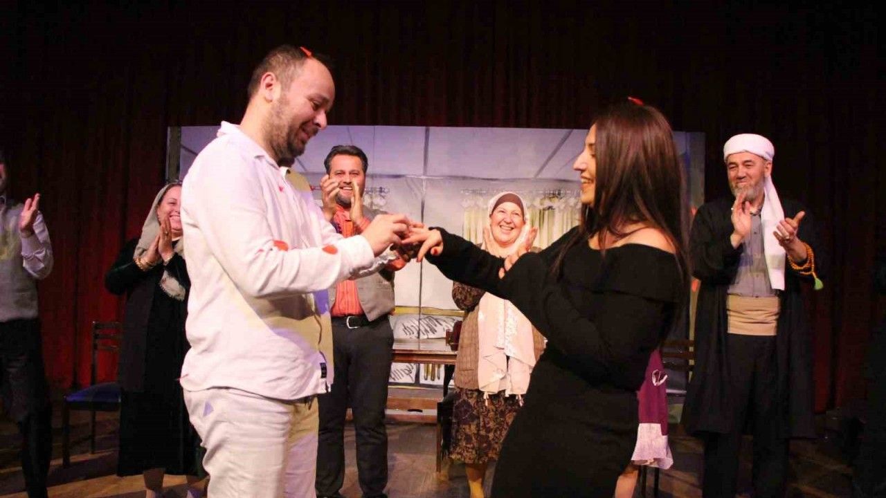 Türk medeni kanununun kabulünün 99. yıl dönümü dolayısıyla Amasya Kent Konseyi’nin organize ettiği etkinlikte İris Sanat Tiyatrosu ‘Hülleci’ adlı oyunu sahneledi. Beğeniyle izlenen oyunun sonunda selamlama sırasında çiçek vereceğini belirterek sahneye çıkan seyircilerden muhasebeci Aykut Aylak, meslektaşı olan kız arkadaşı Burcu İnan’ı sahneye davet etti. Sevdiğine önce şiir okuyan genç, ardından evlenme teklifinde bulundu. Dizlerinin üzerine çöken Aylak’ın teklifine "Evet" diyen İnan yüzüğü parmağına taktı. Birbirlerine sarılan genç çift, mutluluklarına ortak olan tiyatrocu ve seyircilerden uzun süre alkış aldı.