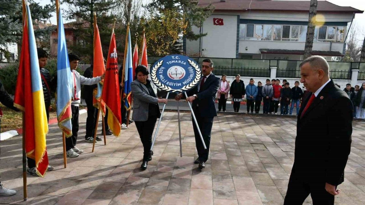Hükümet Konağı bahçesinde düzenlenen tören; saygı duruşunda bulunulması ve İstiklal Marşı’nın okunması ile başladı. Törende İlçe Milli Eğitim Müdürü Mehmet Kurt çelenk sundu. Çelenk sunma töreninin ardından Öğretmenler Günü etkinlikleri; Tomarza Kız İmam Hatip Lisesi’nde devam edecek.