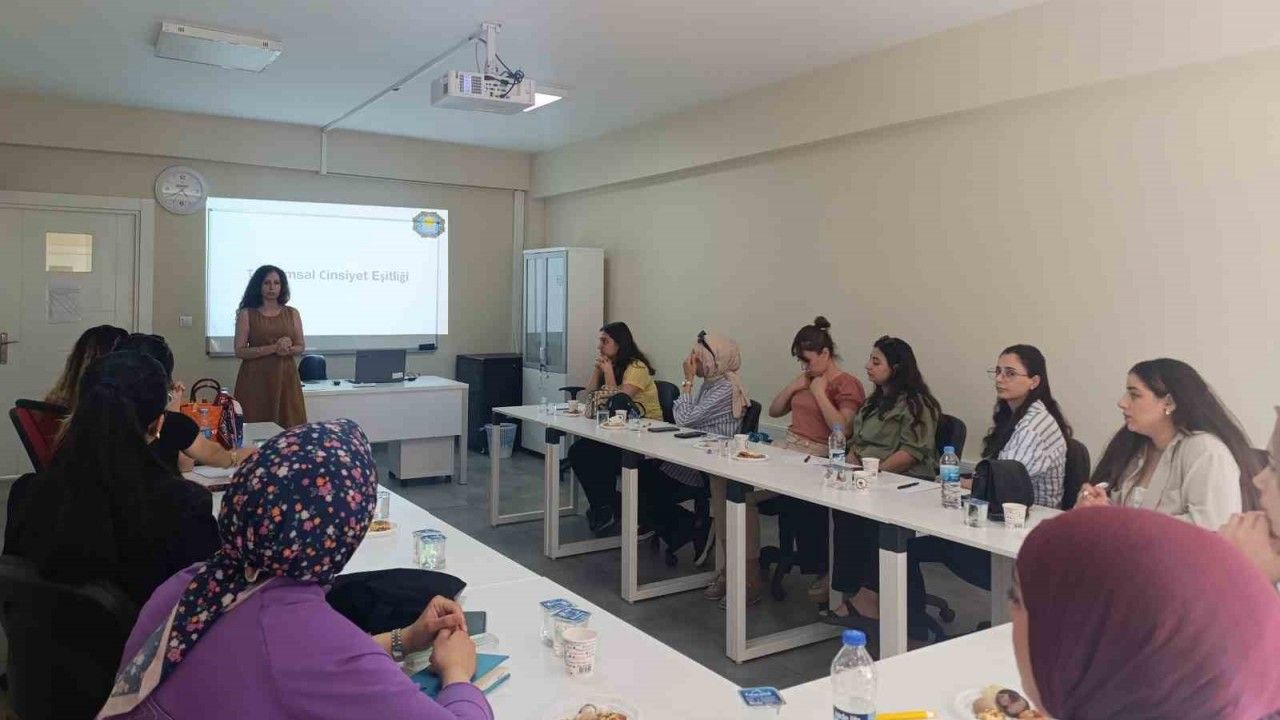 Eğitmen Rojda Kızgın tarafından verilen eğitimde, toplumsal cinsiyet eşitsizliğinin kadınların yalnızca meslek seçimini değil, ekonomik bağımsızlıklarını ve yaşam kalitelerini de etkilediğine vurgu yapıldı. Toplumsal cinsiyet eşitsizliği nedeniyle kadınların eğitim fırsatlarına erişemediği, işe alımda ayrımcılıklara maruz bırakıldığını belirten Kızgın, kadınların ücretli işlerinin yanı sıra ev işleri ve çocuk bakımı gibi görünmeyen işlerin de büyük kısmını üstlenmesinin, kadınların iş gücünden erken ayrılmasına neden olduğuna dikkat çekti.
