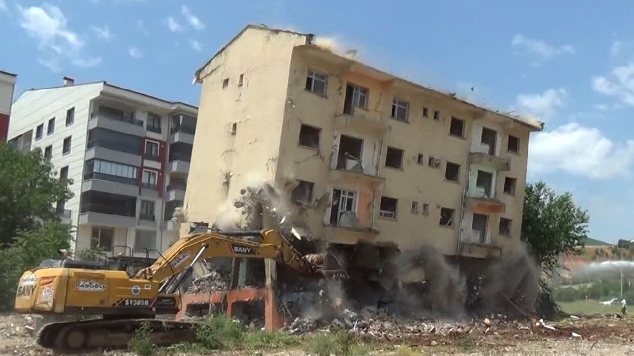 Çalışma alanında incelemelerde bulunan Vali Aygöl, iş makinesine binerek yıkım çalışması gerçekleştirdi. Yıkım esnasında bir binanın çökmesi etrafı tozla kapladı.