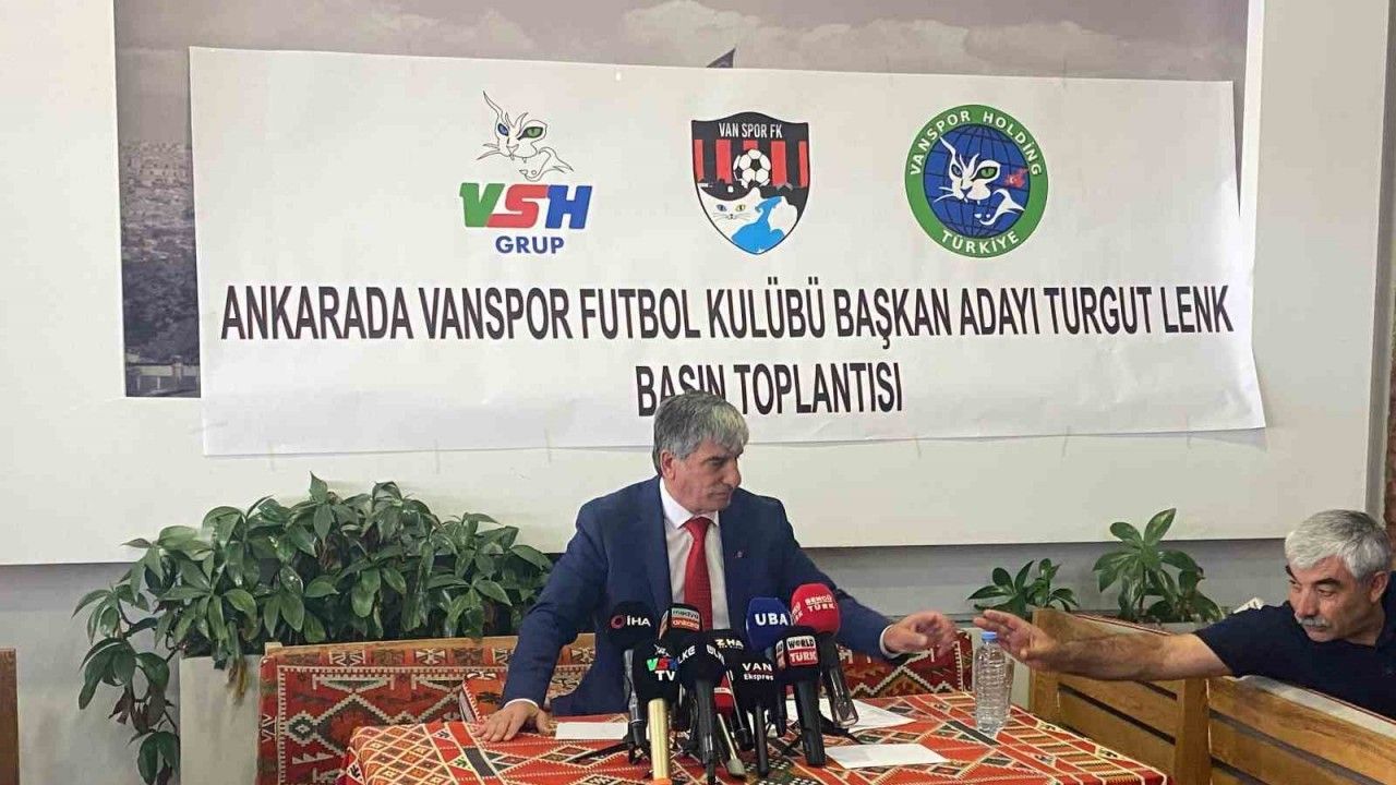 Vanspor FK Başkan Adayı Turgut Lenk, Ankara’da yerel ve ulusal basın mensuplarıyla yaptığı toplantıda, "Ben futbolun mutfağından geldiğim için Vanspor’u gerektiği yerde Süper Lig’e çıkarma çabamız olacak" dedi.