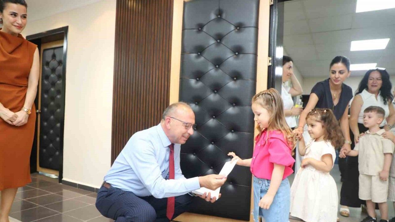 Minik öğrencilerden Başkan Çetin Akın’a bayram ziyareti