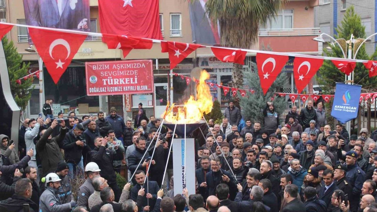 Sinop’un Türkeli ilçesinde altyapı çalışmalarının tamamlanmasının ardından ilk doğalgaz, düzenlenen meşale yakma töreniyle konutlara verildi.