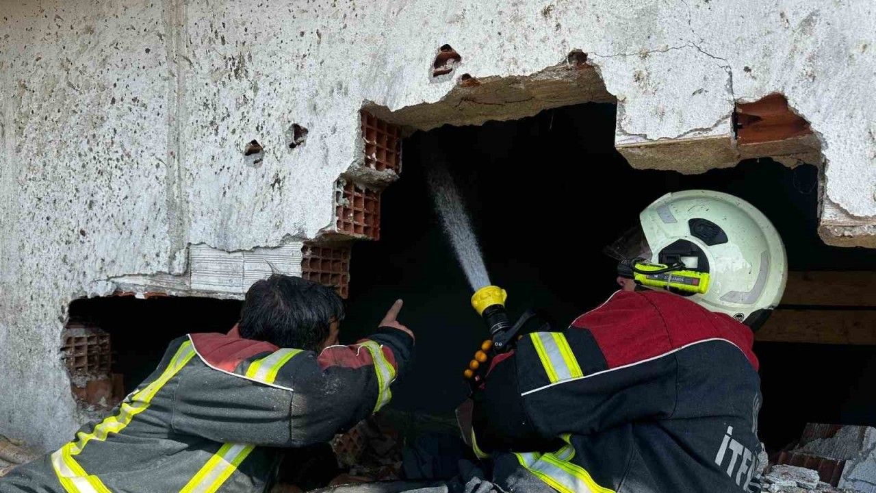 Uşak’ta 2 katlı ev ve bir ahır çıkan yangında kullanılmaz hale geldi.