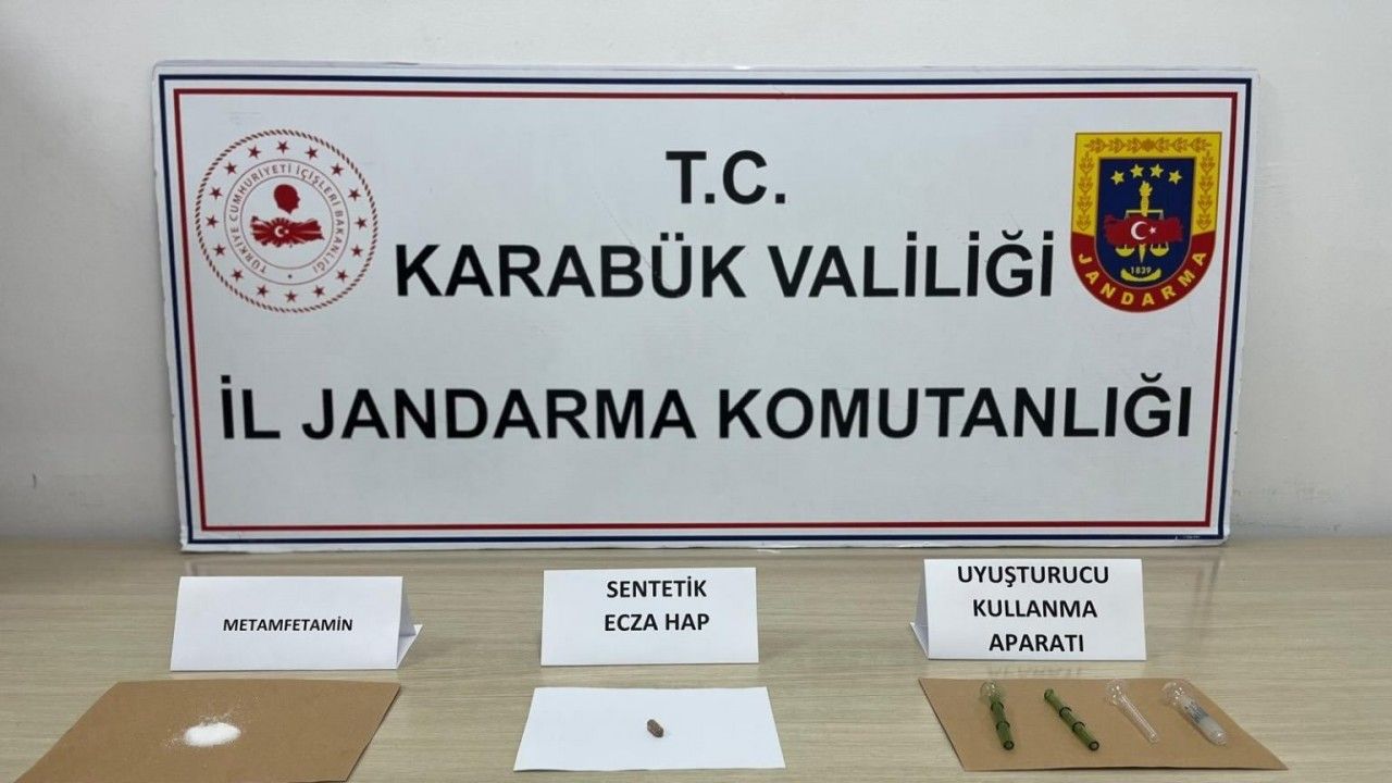 Karabük Cumhuriyet Başsavcılığı koordinesinde, İl Jandarma Komutanlığı ekiplerince 9 Temmuz 2025 tarihinde Karabük Merkez’de gerçekleştirilen operasyonda, 3 şüphelinin üzerinde, eşyalarında ve ikametlerinde yapılan aramada 1,25 gram metamfetamin, 1 adet sentetik ecza hap ve 4 adet uyuşturucu kullanma aparatı ele geçirildi.