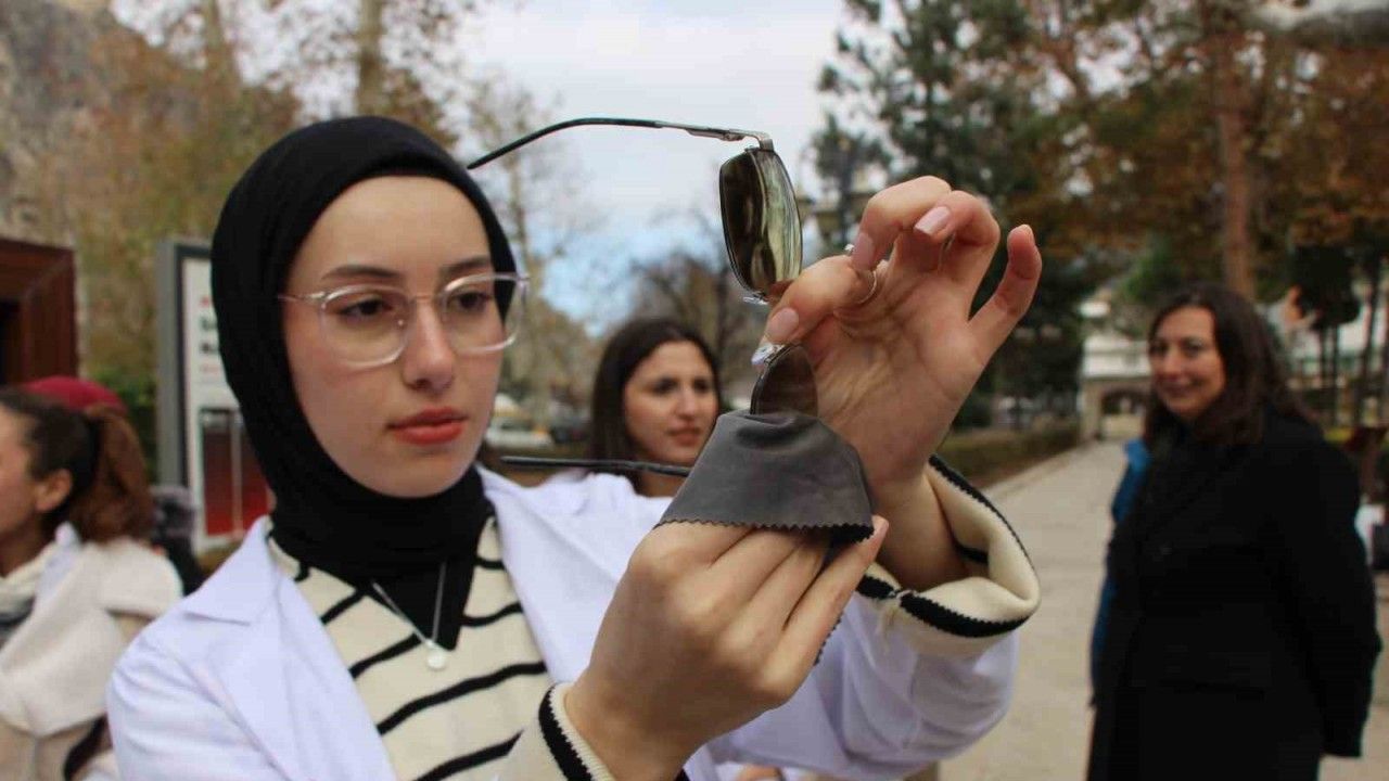 Optisyenlik Programı öğrencileri, vatandaşların gözlük camlarını temizleyip bakım yaptı