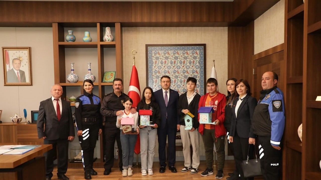 Gerçekleştirilen ziyarette, özel eğitim öğrencilerinin hazırladığı el emeği çalışmalar Vali Işın’a hediye edildi. Öğrenciler, sosyal farkındalık etkinlikleri ile polis teşkilatıyla yürüttükleri ortak projeler hakkında da bilgi paylaştı. Ziyaretten duyduğu memnuniyeti dile getiren Vali Musa Işın, öğrencilerle yakından ilgilenerek onların hazırladığı kuş evlerini inceledi.