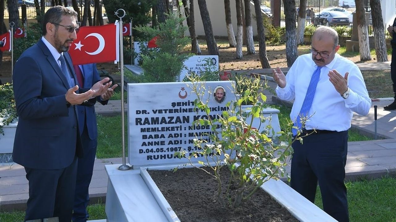 Ev ziyaretinin ardından şehidin ebedi istirahatgâhı olan Bandırma Garnizon Şehitliği’ne geçildi. Burada da Kur’an-ı Kerim tilaveti yapılarak dualar edildi. Şehidin ailesi ve protokol üyeleri hep birlikte kabri başında dua etti.