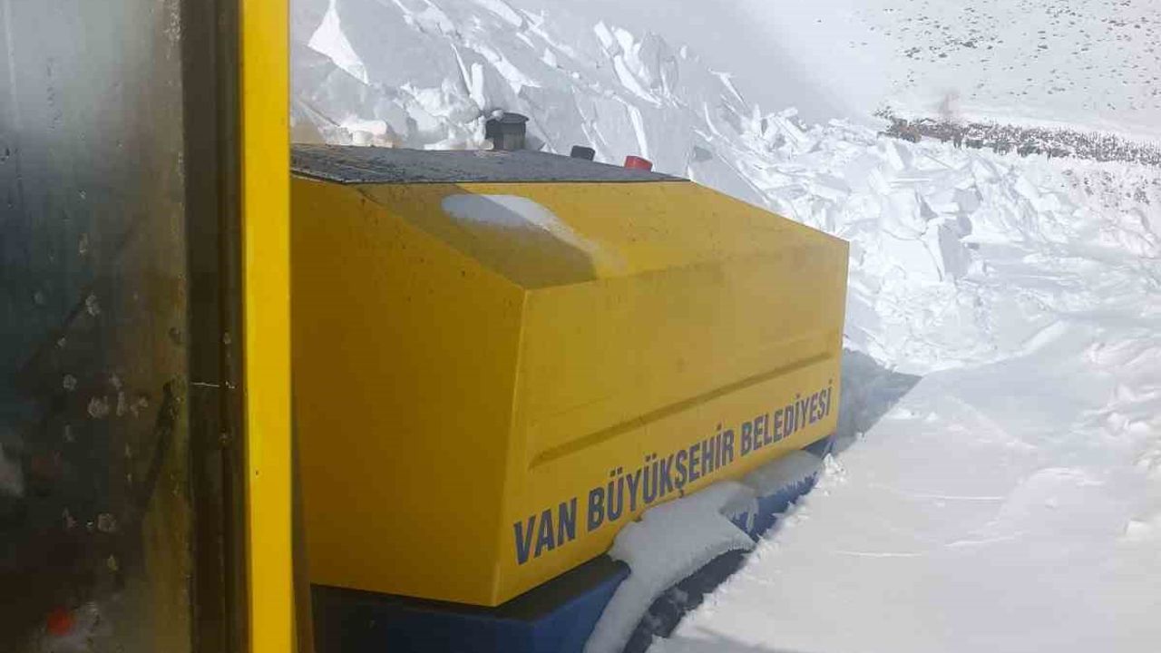 Van’ın Başkale ilçesinde yol açma çalışması sırasında iş makinesinin üzerine çığ düştü. İş makinesi operatörü araçtan kendini atarak son anda kurtuldu.