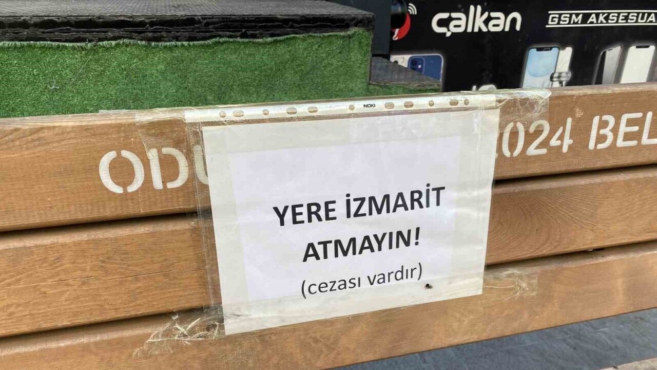 Eskişehir’de yere sigara izmariti atılmasının yasaklanması nedeniyle dükkanın önündeki bankın üzerine "Yere izmarit atmayın. Cezası vardır" yazılı bir uyarı yapıştıran esnaf, vatandaşların yasağı dikkate almadığını belirtti.