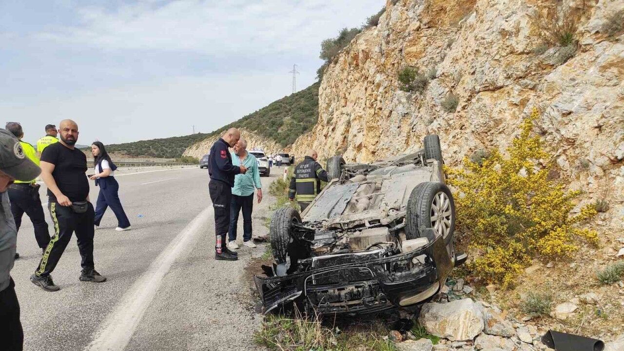 Aydın’ın Kuşadası ilçesinde virajı alamayan otomobil takla atarken, kazada 2 kişi yaralandı.