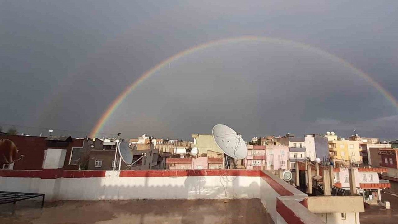 Viranşehir ilçesinde yoğun yağışın ardından gökkuşağı ortaya çıktı. Gökkuşağı renkleriyle görenleri hayran bıraktı. O anı görüntülemek isteyenler cep telefonlarına sarıldı. Uzun süre görsel şölen sunan gökkuşağı, güneşin etkisini arttırmasının ardından kayboldu.