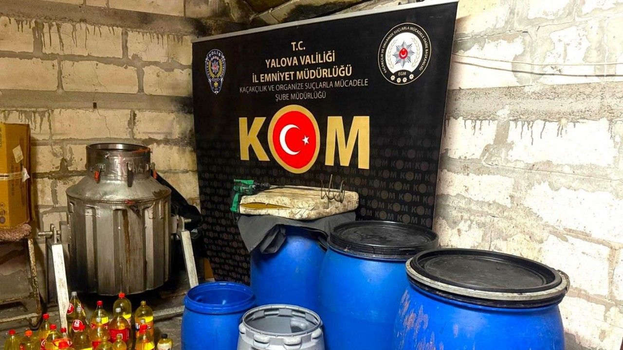 Alınan bilgiye göre, Kaçakçılık ve Organize Suçlarla Mücadele Başkanlığı koordinesinde ülke genelinde kaçak alkol üretimi yapan ve ürettikleri kaçak alkolleri yılbaşında piyasaya sürecekleri değerlendirilen şahısların tespiti ve yakalanmasına yönelik operasyonlar devam ediyor. Bu çerçevede Yalova Emniyet Müdürlüğü tarafından il merkezi, Çiftlikköy ve Altınova ilçelerinde toplam 4 adreste eş zamanlı gerçekleştirilen operasyonlarda önemli miktarda kaçak alkol ele geçirildi.