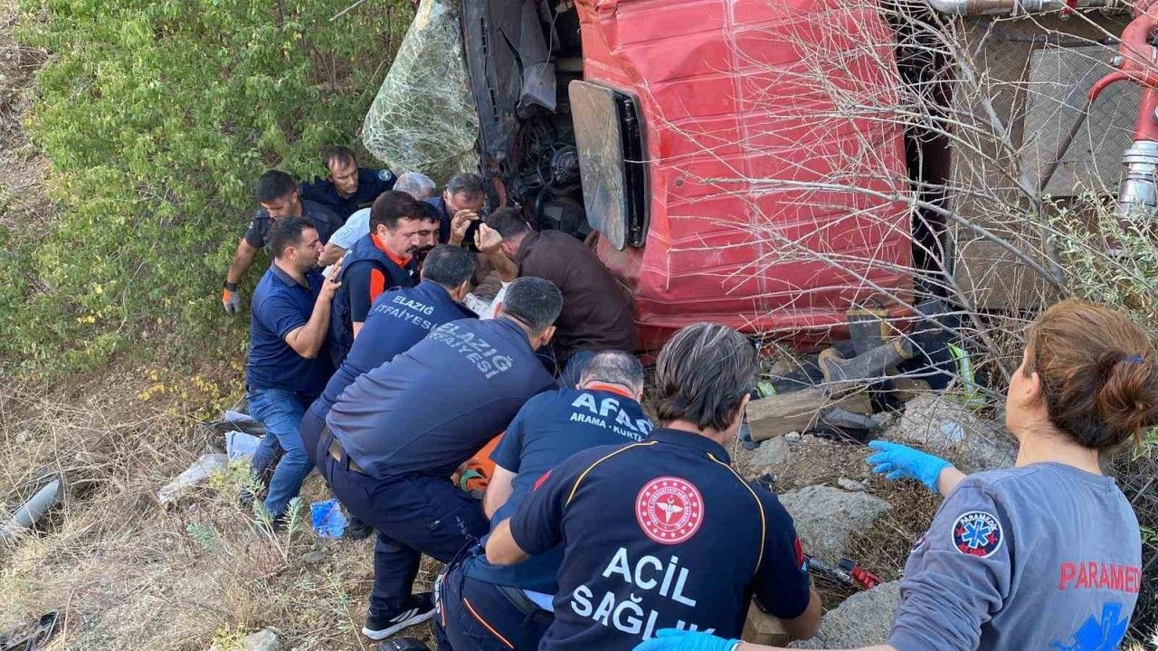 Elazığ’da yangına giden itfaiye aracının şarampole yuvarlanması sonucu meydana gelen kazada 2 itfaiye eri yaralandı. Araçta sıkışan yaralılardan birini meslektaşları 1 saatlik çalışma sonucunda kurtardı.
