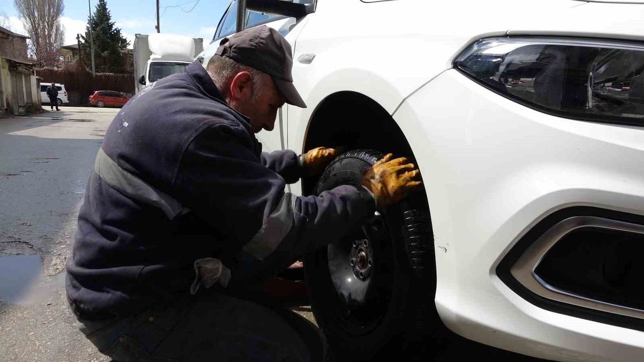 İHA muhabirine konuşan oto lastik ustası Yusuf Sancak, havaların ısınmasıyla birlikte kış lastiği değişim sezonunun başladığını belirtti. Bazı günlerde yağışlar devam etse de bugün itibariyle yoğunluklarının arttığını ifade eden Sancak, 'Şehir merkezinde yolculuk yapan müşterilerimizin lastiklerini artık değiştirmesi gerekiyor ancak yüksek kesimlere yolculuk yapanların ise acele etmemesi önem arz ediyor' dedi.