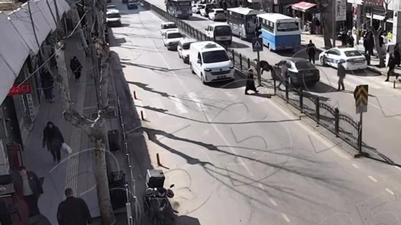 Amasya’da yaya geçidinden geçerken otomobilin çarptığı bir kadın yaralandı. Kaza anı güvenlik kamerasına yansıdı.