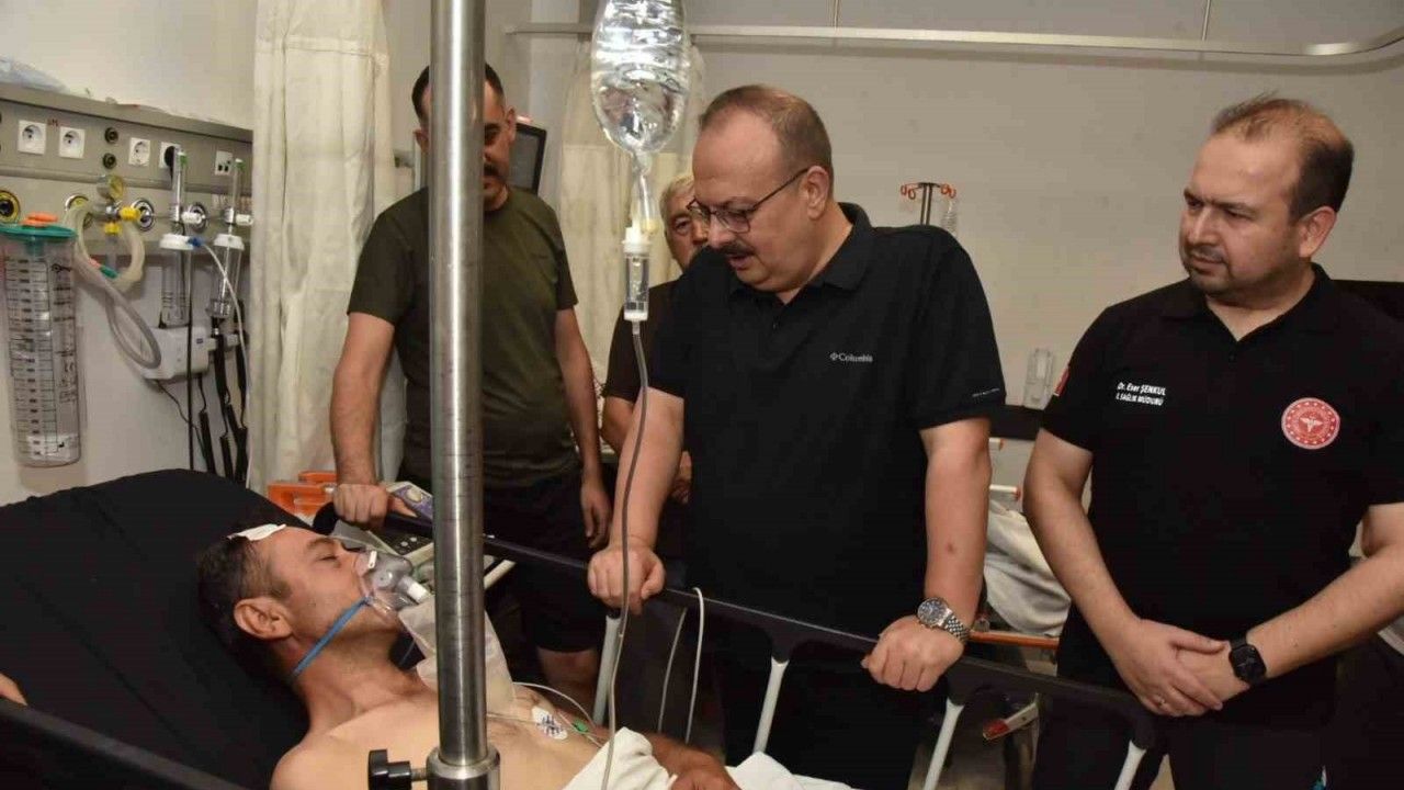 Aydın Valisi Yakup Canbolat Efeler ilçesinde zirai alanda meydana gelen yangını söndürme çalışmaları sırasında başından yaralanan Yasin Tosun’u tedavi gördüğü hastanede ziyaret ederek geçmiş olsun dileklerini iletirken, yangında toplam 15 kişinin hastanelerde tedavi altına alındığı öğrenildi.