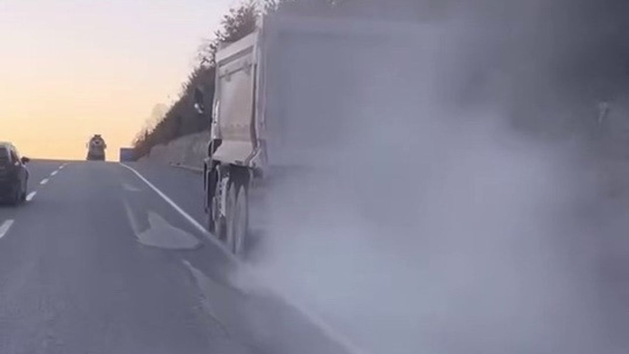 Adıyaman’da, seyir halinde olan bir kamyon yola beyaz kum dökerek hem toza boğdu hem de sürücülere zor anlar yaşattı.