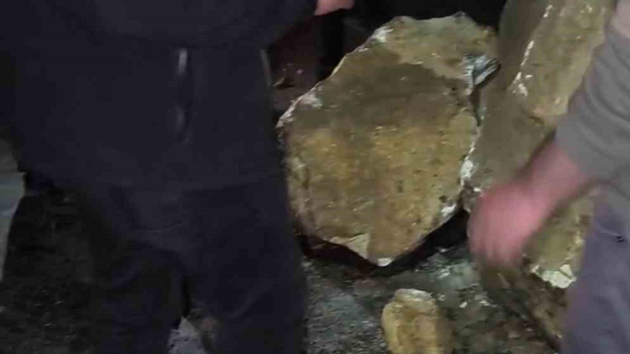Yüksekova-Van Karayolu’nda bulunan Suüstü köyünün yakınlarında dağdan kopan kaya parçaları yolun ortasına düştü. Vatandaşlar, kendi imkanlarıyla kaya parçalarını yoldan kaldırdı.