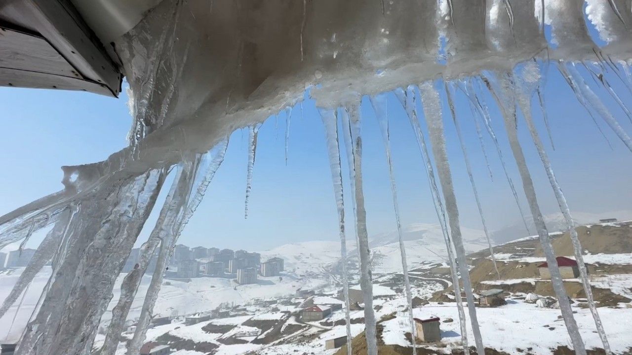 Yüksekova ilçesinde aşırı soğuklar nedeniyle iş yeri ve evlerin çatılarında uzun buz sarkıtları oluştu. Geceleri hava sıcaklığının eksi 15 dereceye kadar düştüğü ilçede ev ve iş yerlerinin çatılarında buz sarkıtları oluştu. Yaklaşık 2 metreyi aşan buz sarkıtları tehlike oluştururken, vatandaşların bu konuda dikkatli olması gerektiği belirtildi.