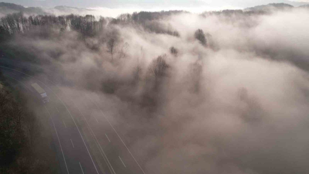 Öte yandan, sisin oluşturduğu doğa manzaraları adeta kartpostallık görüntüler sundu. Ormanlık alanlarda yoğunlaşan sis, güneşin ışıklarıyla birleşerek izleyenleri hayran bırakan görüntüler oluşturdu.